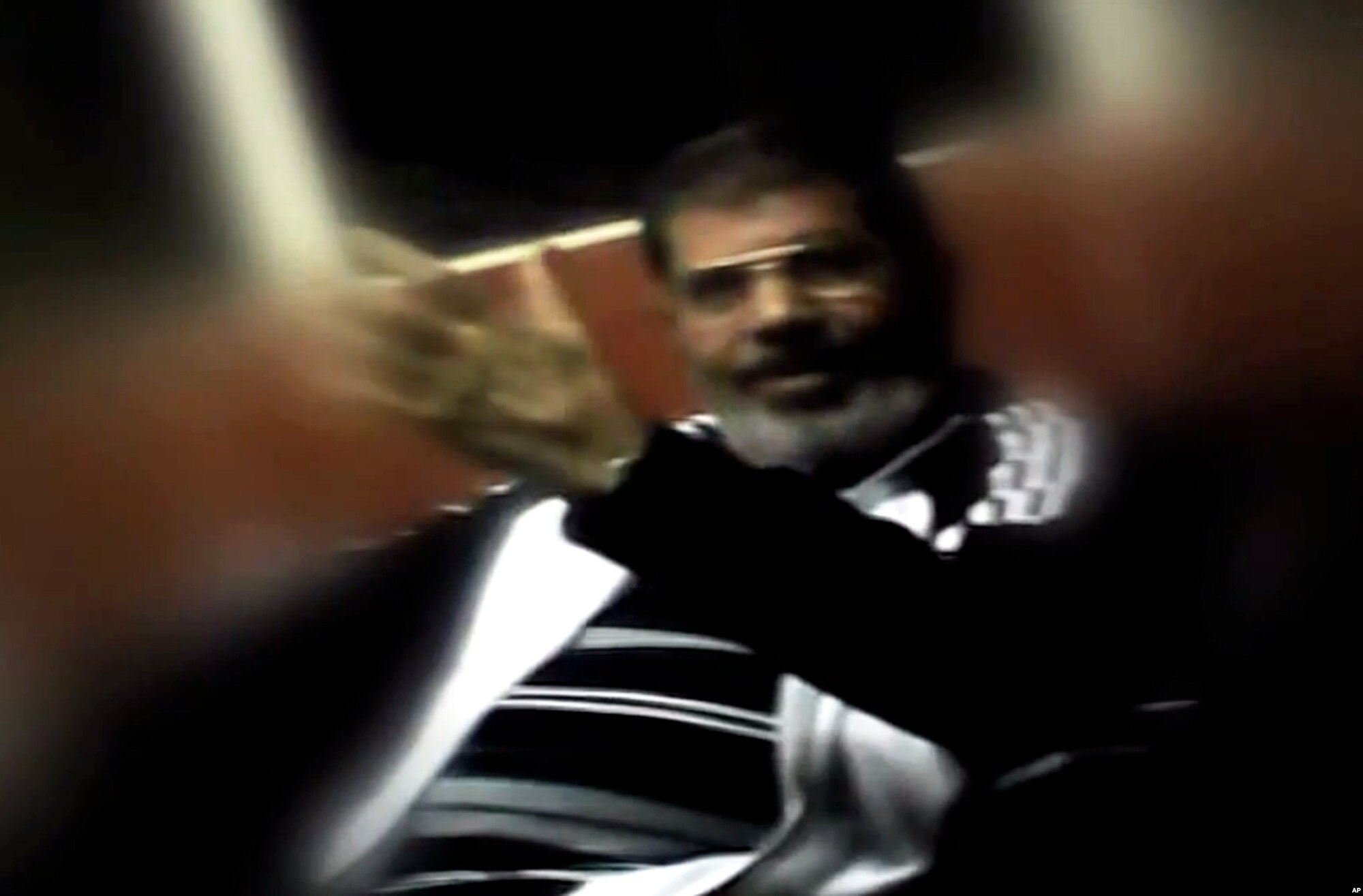 This image made from undated video posted on the website of the el-Watan newspaper on Sunday, Nov. 3, 2013, shows ousted President Mohammed Morsi during his detention at an undisclosed facility in Egypt following his ouster.