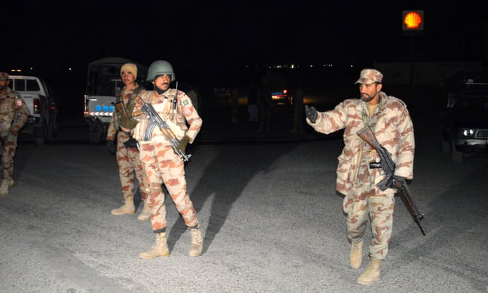 | Pakistani soldiers arrive at a terrorist attack site in Quetta, Pakistan, on Tuesday in which at least 12 people were injured. The US is suspended its funding for counter-terrorism operations. Photograph: Xinhua / Barcroft Images |