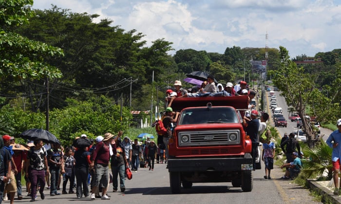 Sympathetic Mexicans along the way offer the weary migrants food, water, clothing, with locals driving pickups, vans and cargo trucks stopping to give migrants a lift. Offers to take the migrants by bus to shelters set up by Mexican immigration officials, seven kilometres outside of Tapachula by civil defence officials have been refused. The migrants convinced that boarding buses would make them vulnerable to deportation.