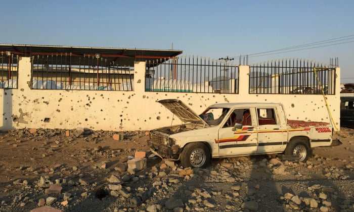 | Buildings hit by Houthi rockets in Najran, Saudi Arabia, August 2016. Photograph: Reuters |