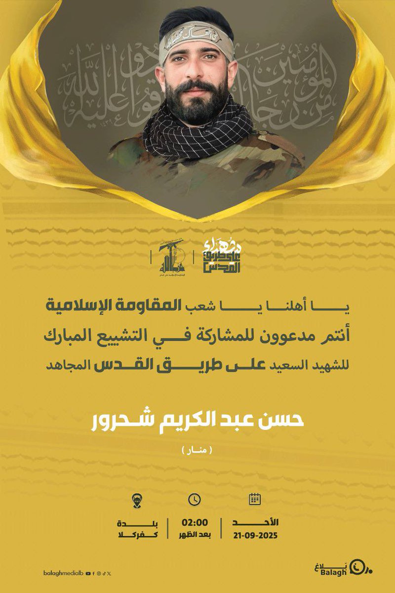 Karim Shahrour, eliminated in an IAF strike, September 2025, Lebanon strike on Saturday on the Khardali-Marjayoun road in southern Lebanon |